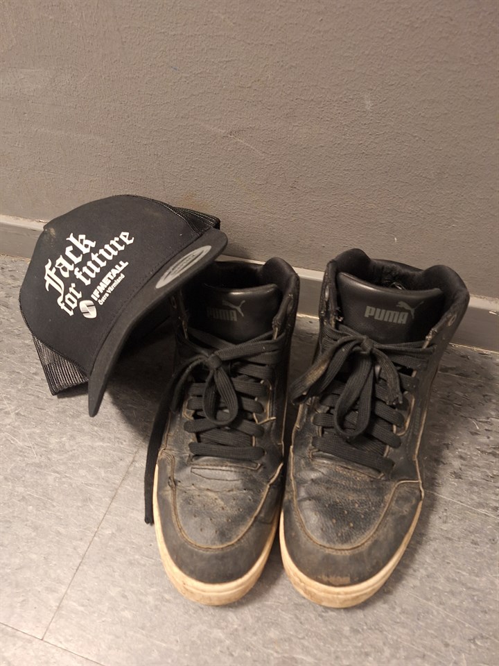 Skor och keps kvarglömda i omklädningsrum J efter våran träning. Dessa har jag lagt in i B förrådet. Hör av er om ni känner igen dessa.