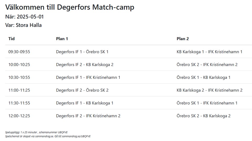 • Matchschema Degerfors